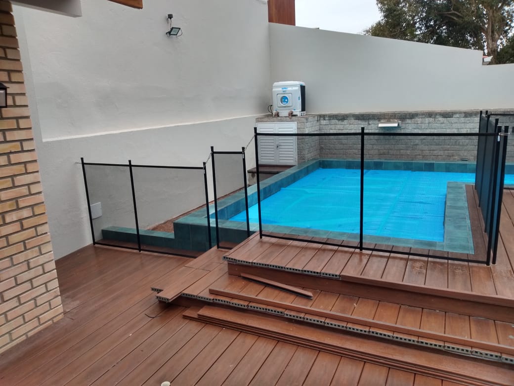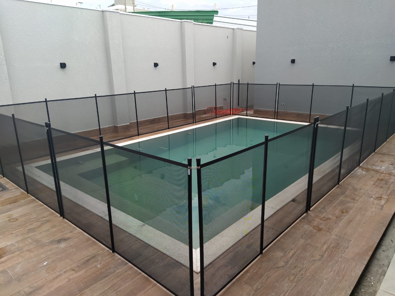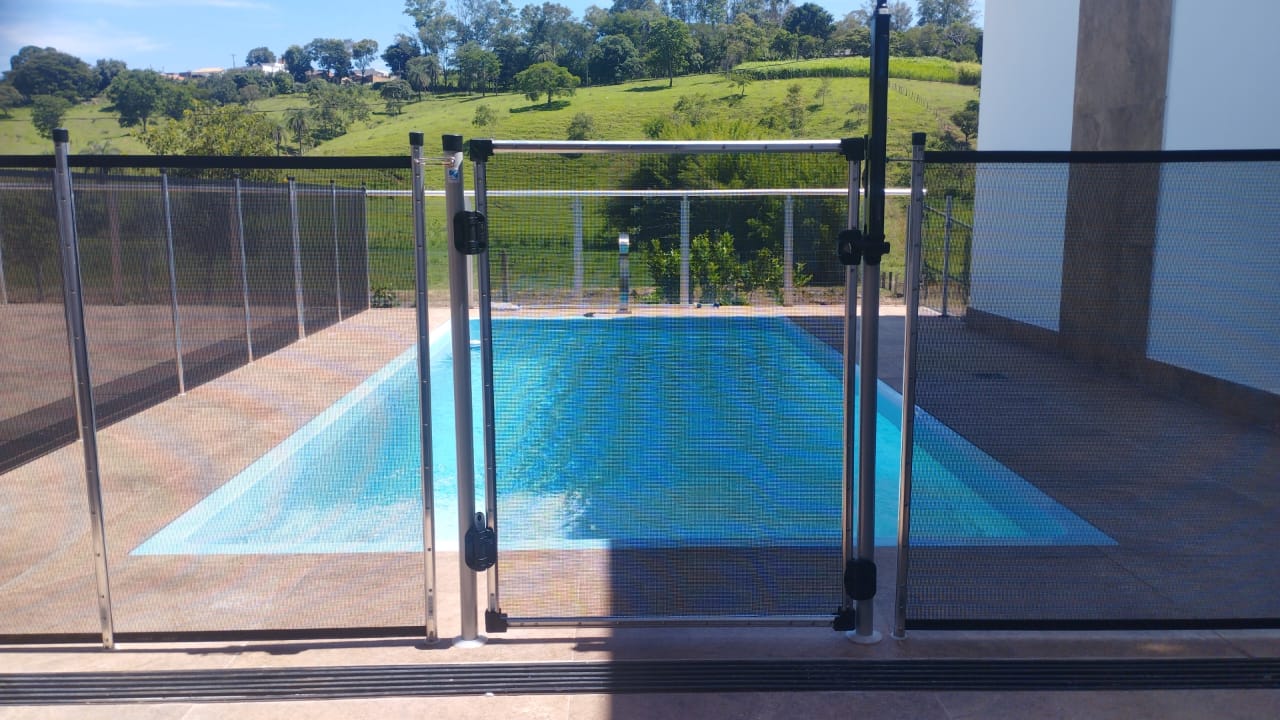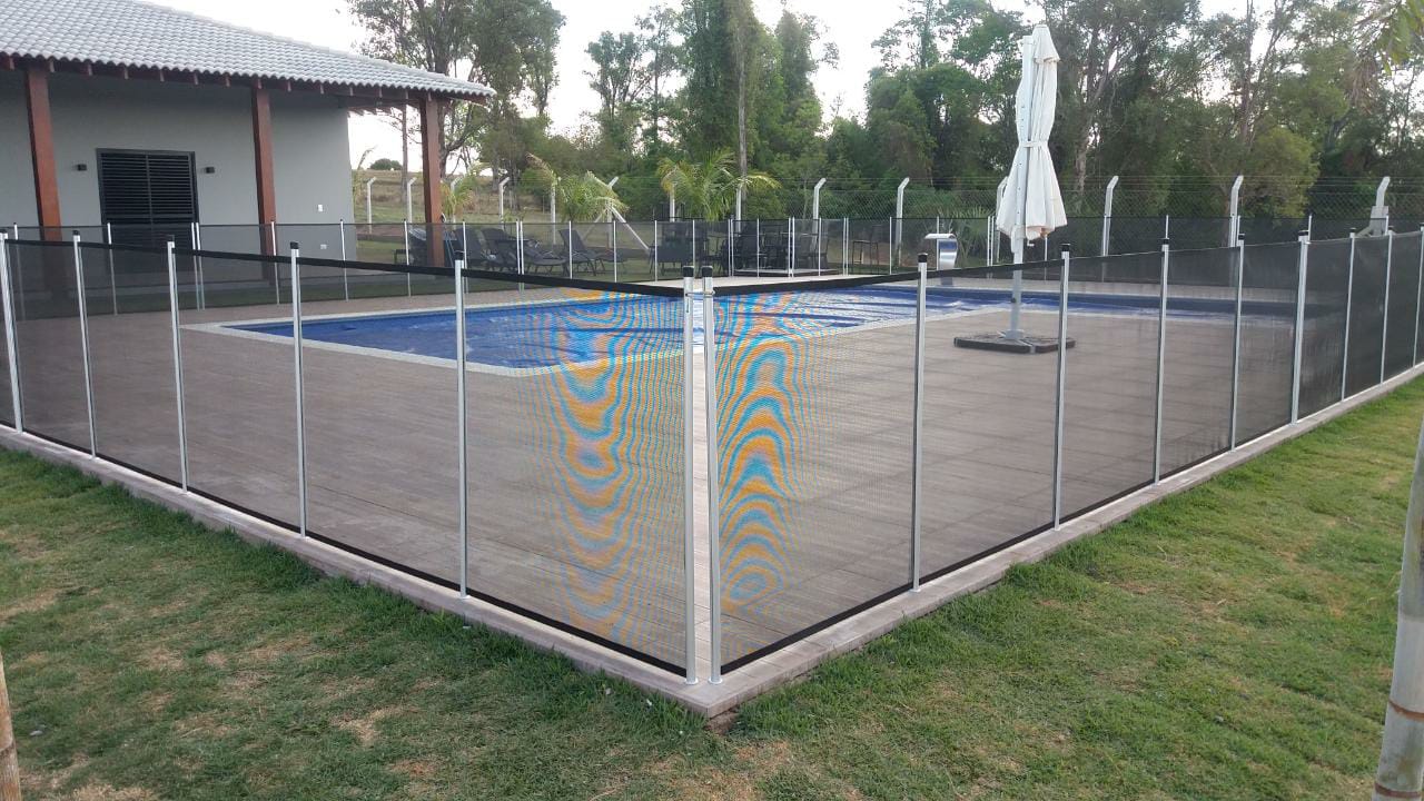 O cercamento de piscina é uma solução prática e eficaz para aumentar a segurança em áreas externas, evitando acidentes com crianças e animais de estimação. Além das piscinas, ele pode ser aplicado em varandas, sacadas, áreas gourmet, playgrounds e outros espaços que necessitam de controle de acesso. Fabricado com hastes de alumínio de dupla camada, telas de poliéster revestidas em PVC e portão magnético de fechamento automático, o cercamento é 100% removível, resistente a impactos de até 80 kg e pode ser instalado em diferentes tipos de piso, como deck, porcelanato ou grama. Conta ainda com proteção UV, anticloro, antichama e antifungos, oferecendo durabilidade e fácil manutenção, com garantia de cinco anos.